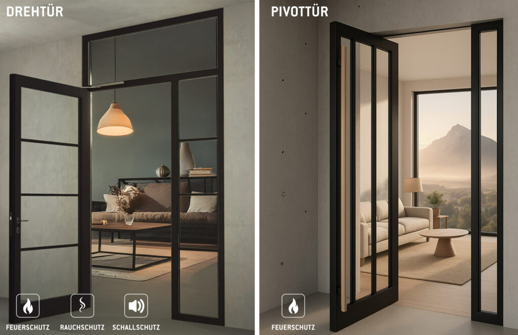 Plus: Auch diese Ausführung erfüllt alle Anforderungen an Schall-, Brand- und Rauchschutz.
