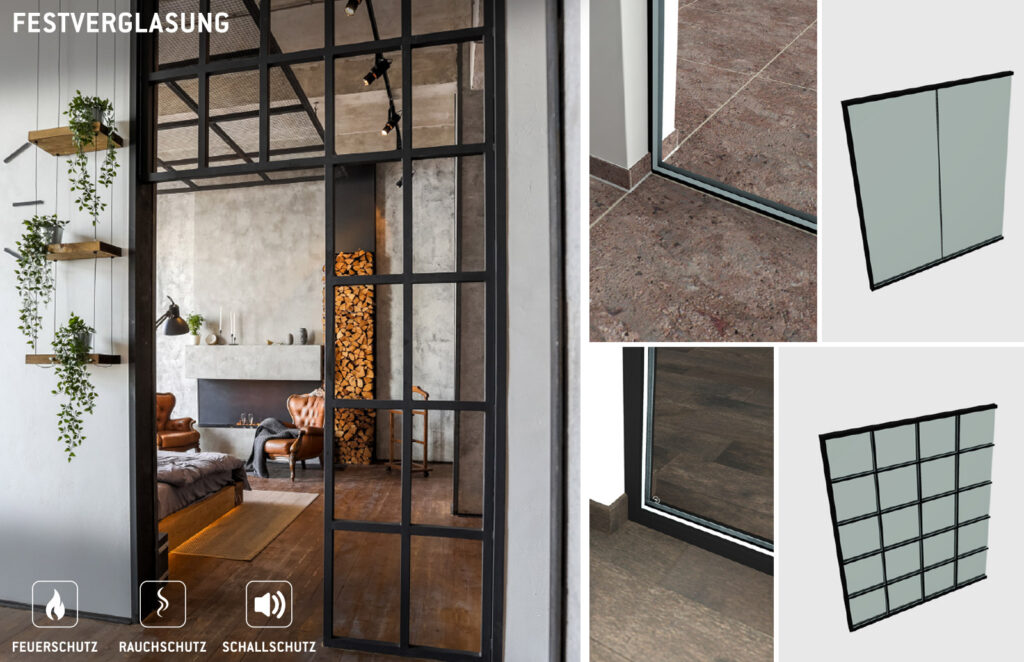 Offenheit, Licht und architektonische Klarheit – dafür stehen unsere Loft-Festverglasungen. Sie schaffen stilvolle Übergänge zwischen Räumen und unterstreichen den modernen Charakter offener Wohn- und Arbeitswelten. Doch Ästhetik allein reicht nicht: Mit integrierten Sicherheitsfunktionen wie Brand-, Rauch- und Schallschutz bieten unsere Festverglasungen nicht nur optische Leichtigkeit, sondern auch höchste Funktionalität.